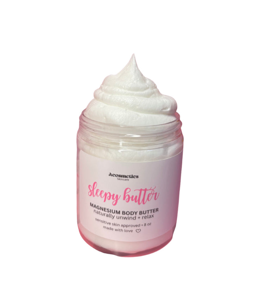 This calming Sleepy Butter is designed to help you rest and recharge while deeply nourishing your skin. It promotes relaxation, eases tension, and leaves your skin feeling soft, smooth, and hydrated. Perfect for applying before bed to help you drift into a peaceful sleep while giving your skin the nighttime care it deserves.